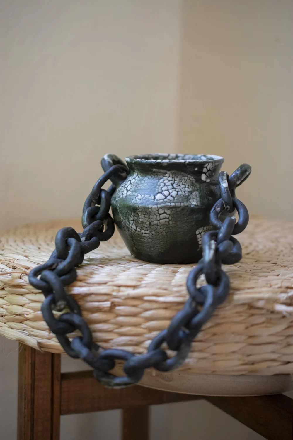 Pieza escultórica o apreciativa en cerámica de alta temperatura con medidas aproximadas de diámetro de 10 cm y altura de 8 cm, cada pieza tiene su propia identidad que le da lo hecho a mano.
